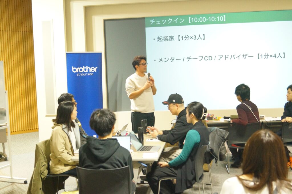 各チームが目標設定をした上で、いよいよプログラムスタート!起業家からの意気込み、メンター陣からの激励の言葉から始まりました。答えのない問いに真剣に向き合い続ける起業家の事業への向き合い方を讃えた上で、どんなに悩んでも最後まとめあげるのが起業家の責任だとのメッセージに、会場はキリリとした雰囲気に包まれました。